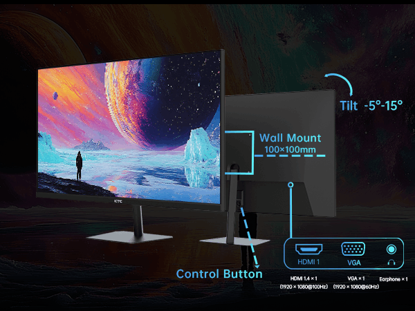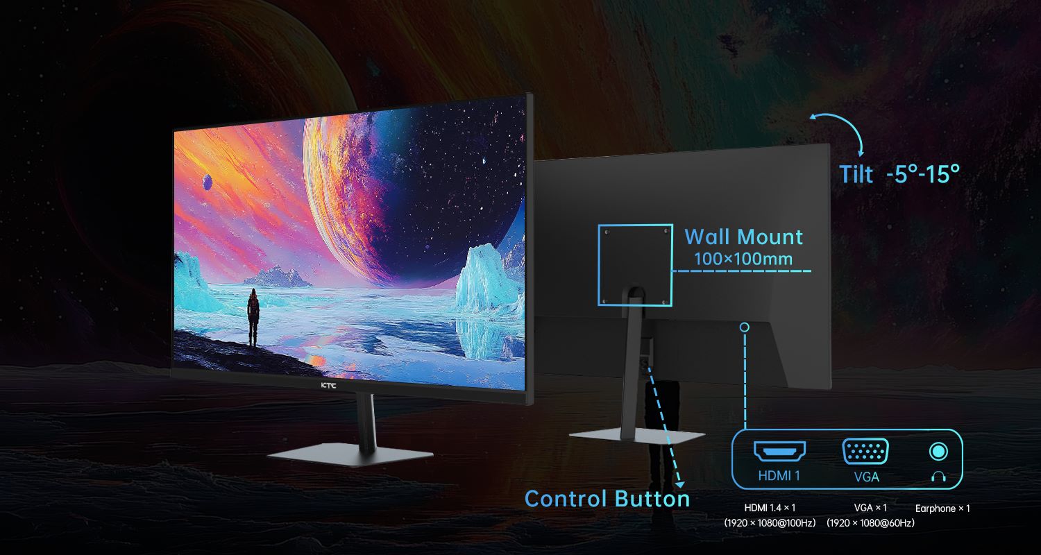 【Practical Connectivity & 3-Year Warranty】Equipped with 1×HDMI (1920×1080@100Hz), 1×VGA (1920×1080@75Hz), and an earphone jack, and backed by a 3-year manufacturer’s warranty for added peace of mind.