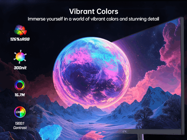 【Wide-Gamut, Accurate Color】126% high color gamut with a pre-set sRGB mode and 99% sRGB coverage provides vivid, consistent, and true-to-life colors.