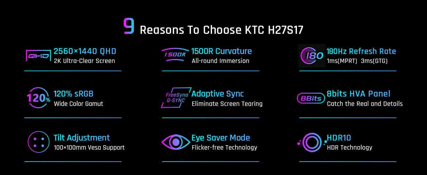 KTC 27" 2K 180Hz/1ms 1500R Curved Gaming Monitor | H27S17