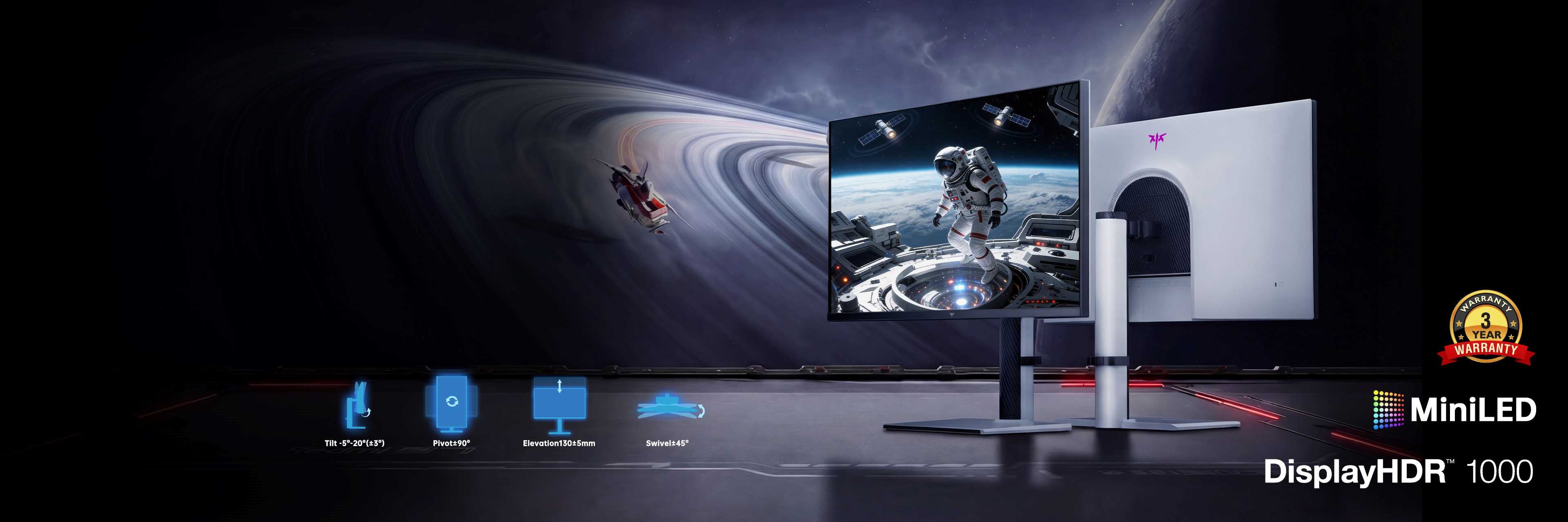 Experience our 27-inch flat display with advanced Mini LED backlight: precise dimming, stunning contrast, deep blacks, vibrant colors, minimal light bleed. Crisp details, vivid visuals—perfect for immersion and precision.