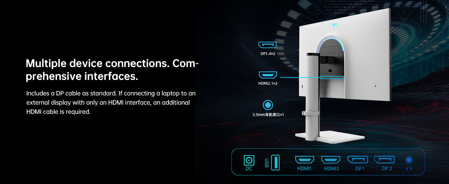 【Dual HDMI 2.1,Dual DP 1.4, USB 2.0 & Headphone Jack】Connect PCs, consoles, peripherals, and audio without adapters for a hassle‑free setup.