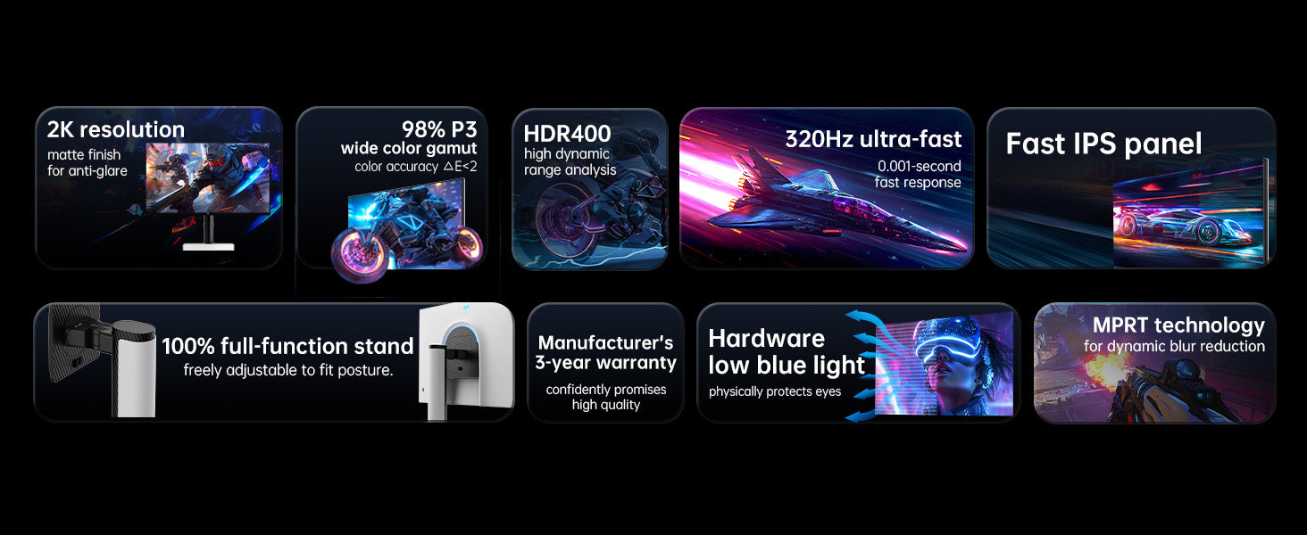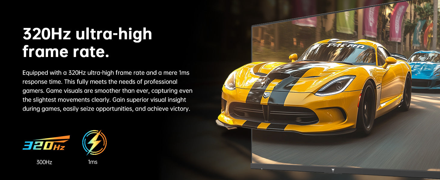【Up to 320 Hz Refresh 】Eliminates lag and blur, ensuring pinpoint accuracy in fast‑paced gameplay.