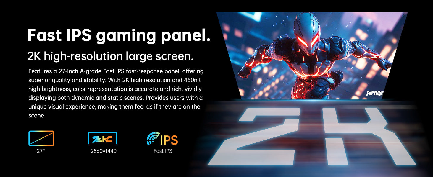 【27″ Fast IPS WQHD (2560×1440) @ 144% sRGB】Delivers vivid, true‑to‑life colors for gaming and content immersion.