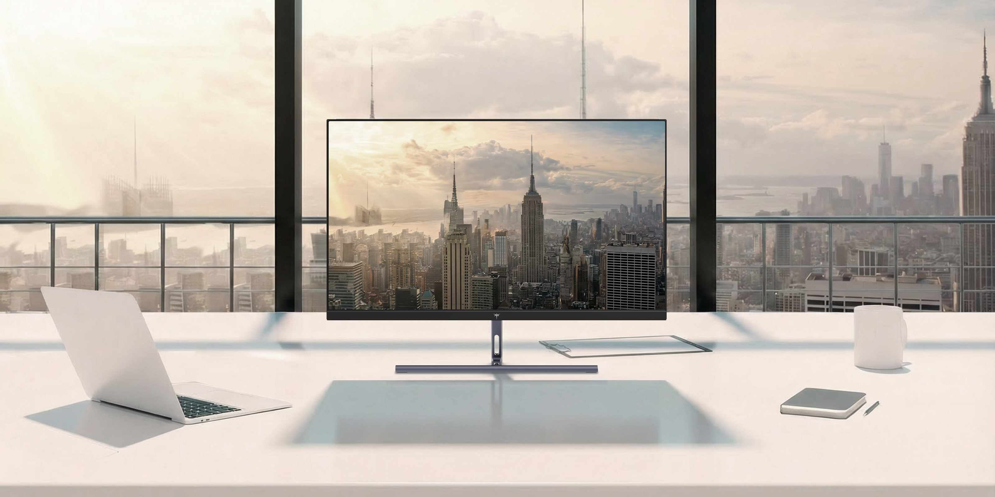 【Sleek Aluminum Stand & Thin-Bezel Design】A premium die-cast aluminum base with tilt adjustment ensures stability and ergonomics, while the minimalist frame fits any modern workspace.