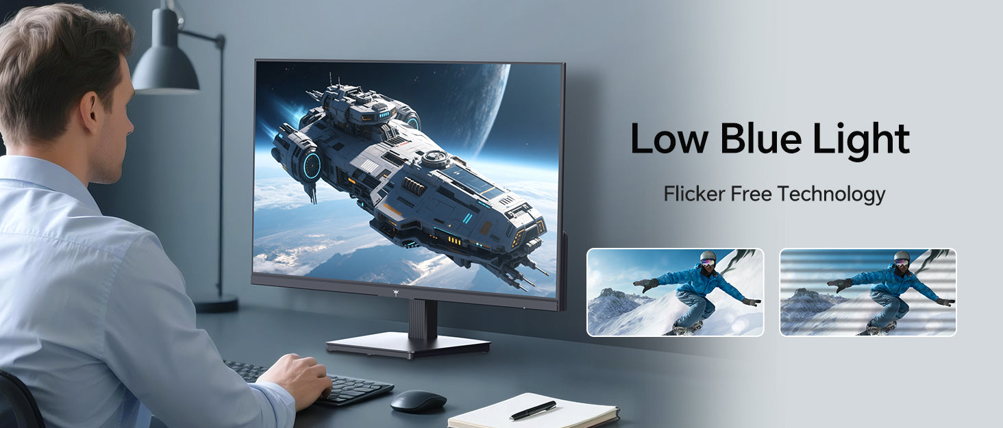 【Eye-Care Features & Adjustability】Low blue light filter, flicker-free tech, and tilt adjustment reduce strain for comfortable long-term use.