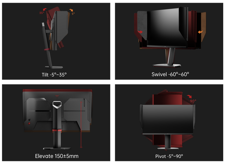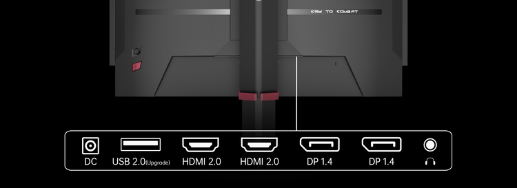 I/O Ports:2*HDMI2.0(2560x1440@144Hz), 2*DP1.4,(2560x1440@200Hz/210Hz OC) 1*USB2.0, 1*Earphone out,2*2W Speaker