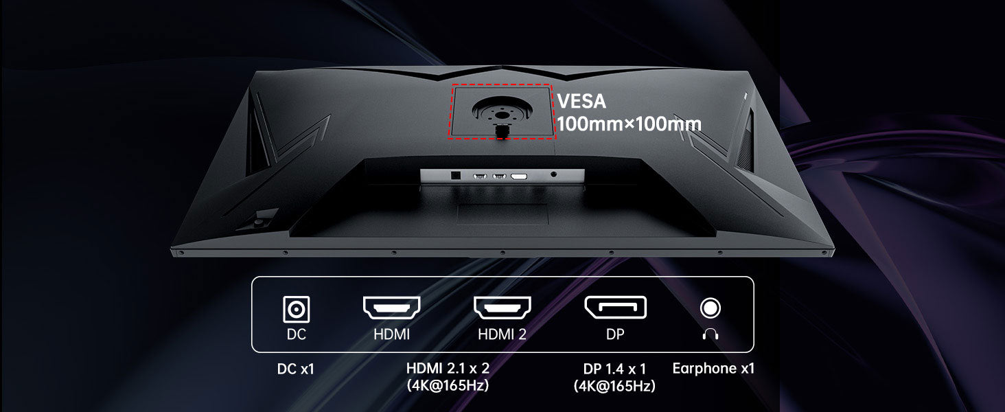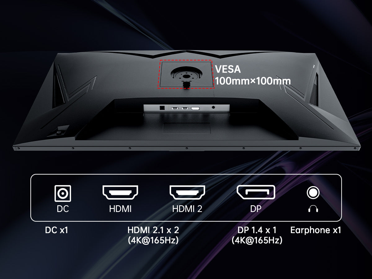 Wide Compatibility】HDMI 2.1 and DP 1.4 support PCs and next-gen consoles, plus 100×100 mm VESA mounting for flexible setups.