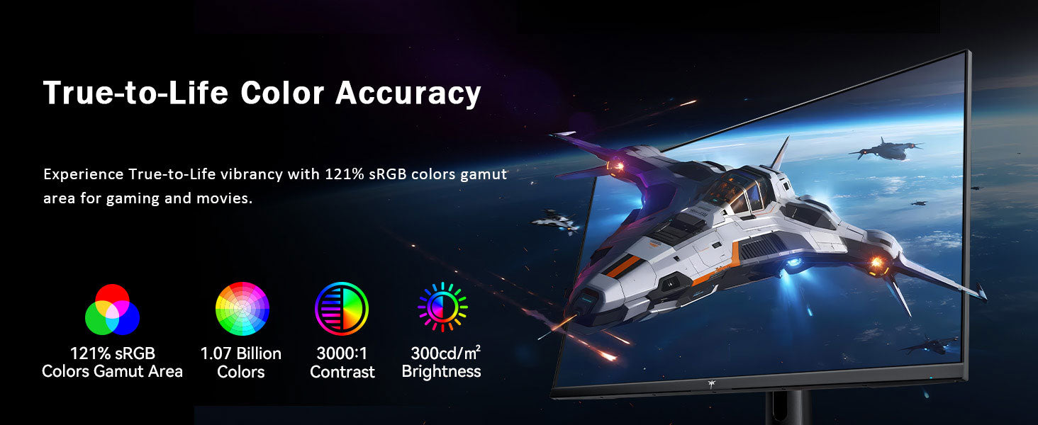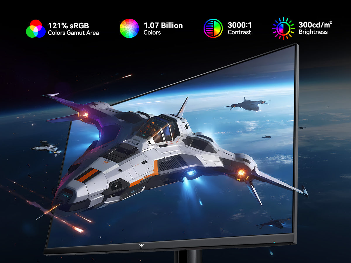 Vivid & Accurate Colors】121% sRGB gamut, 1.07B colors, 3000:1 contrast, and 300 cd/㎡ brightness deliver rich, lifelike color performance.