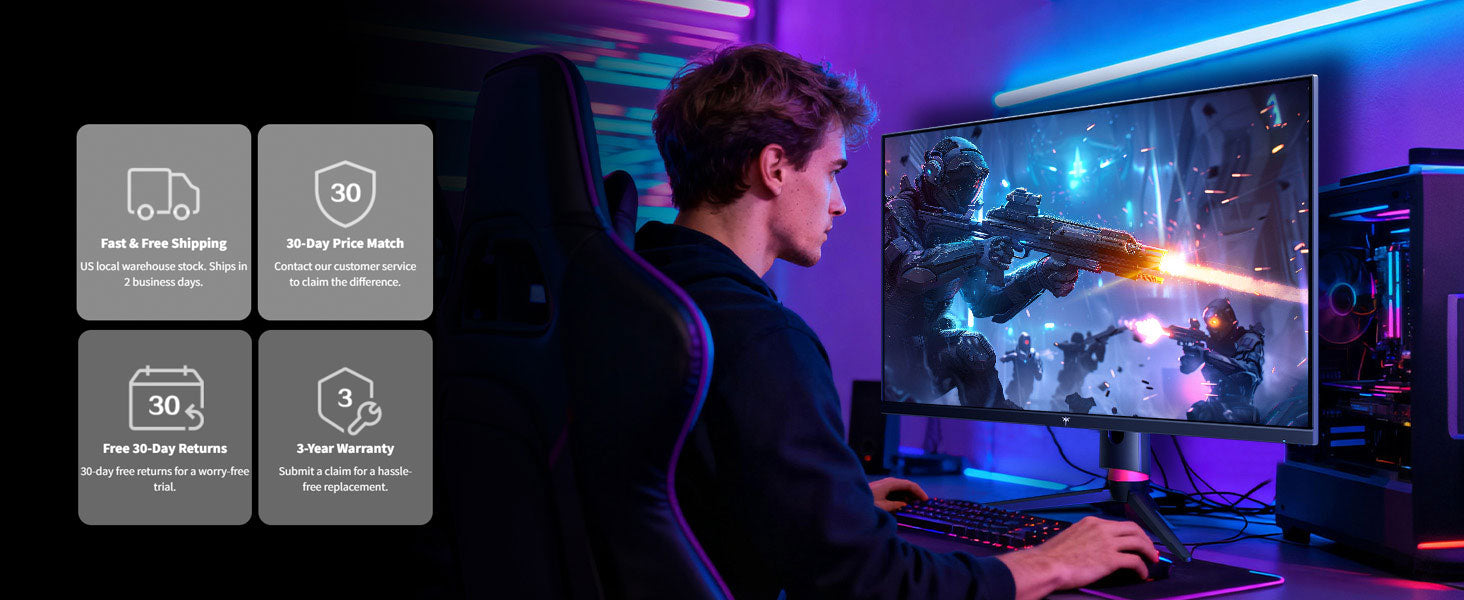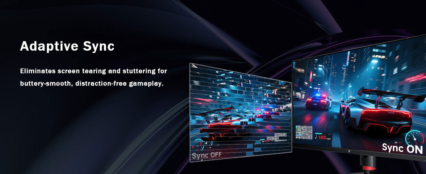 Tear-Free Experience】Adaptive Sync minimizes screen tearing and stuttering for stable, seamless motion in every match.