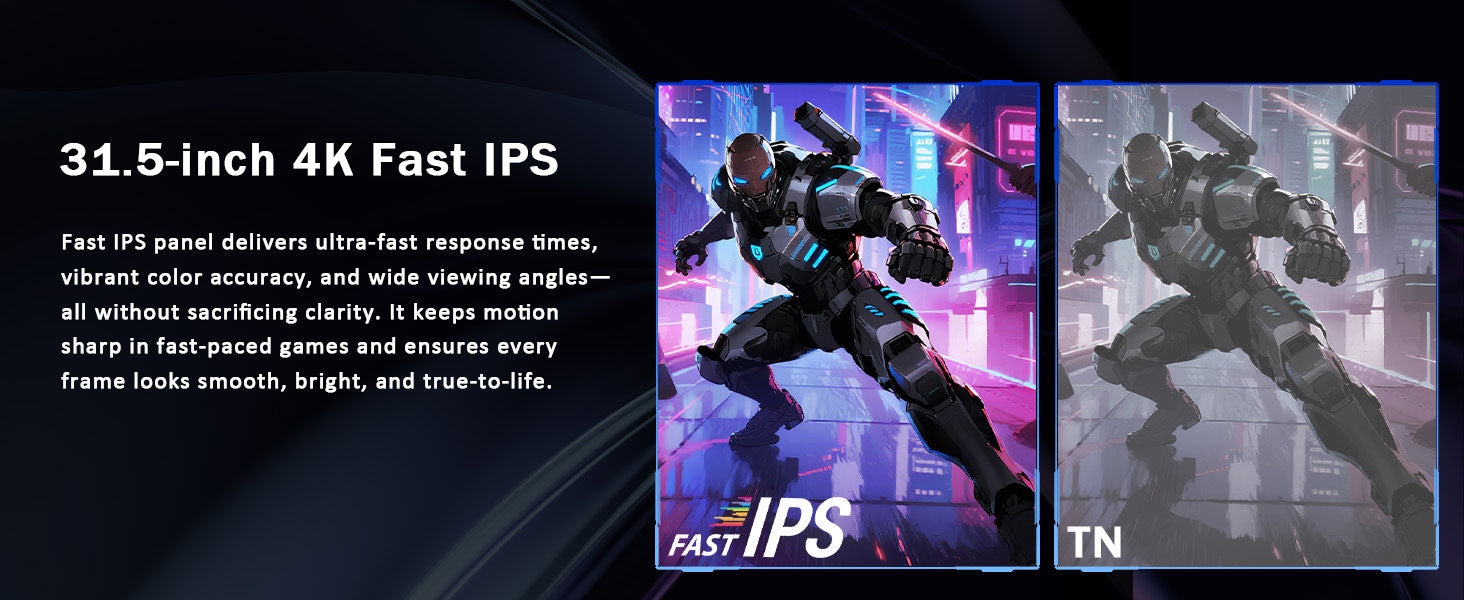 Ultra-Sharp 4K Clarity】Fast IPS panel delivers crisp 4K UHD visuals with exceptional detail for gaming, work, and entertainment.