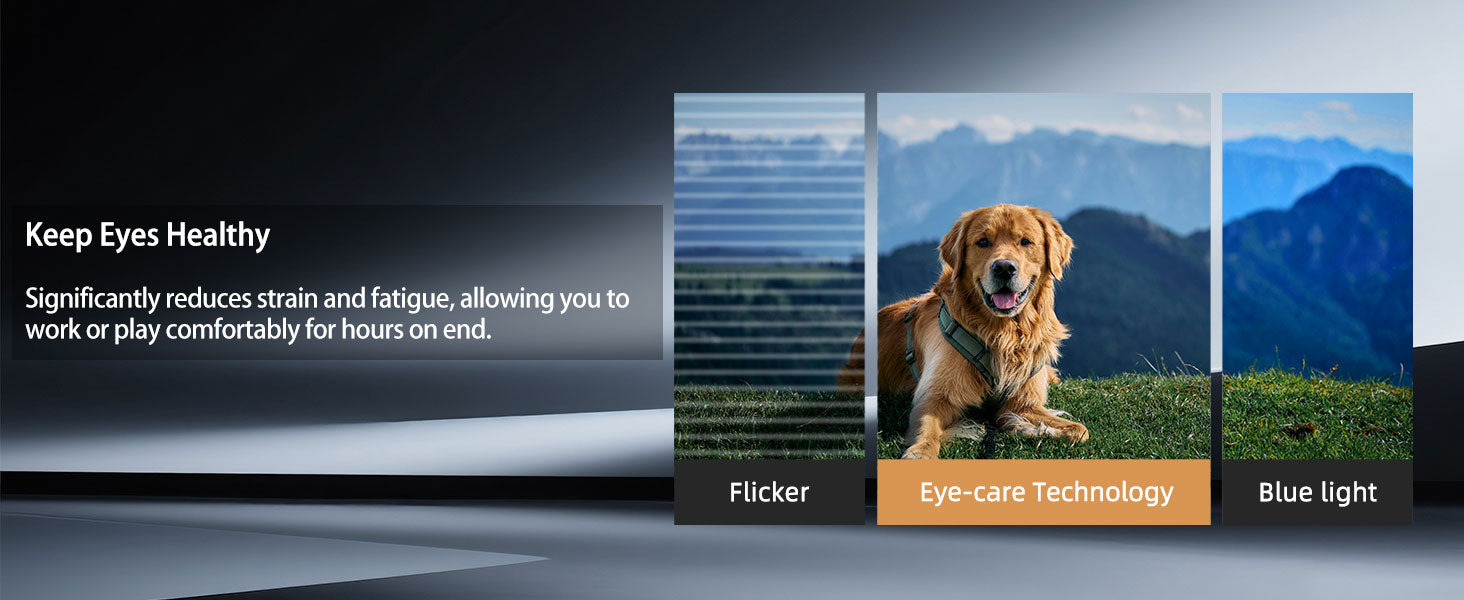 【Comfortable Eye Care】Anti-blue light and flicker-free technology reduce eye strain and fatigue, ensuring comfortable long sessions of work or play.